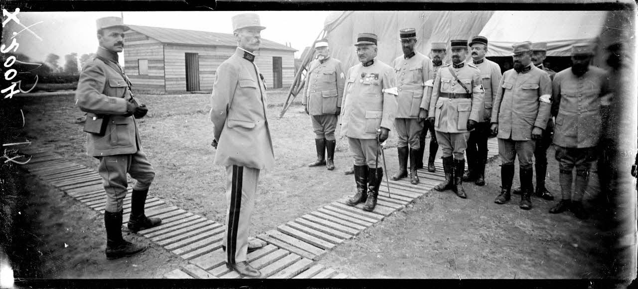 Hardinghen (Pas-de-Calais), remise de décoration au médecin principal Lehmann par le médecin inspecteur général Gouzier. [légende d'origine]
