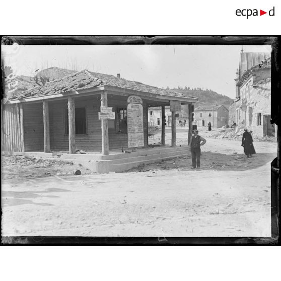 Saint-Maurice. La halle, sur les piliers, écriteaux allemands.