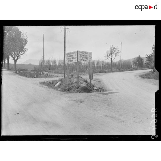 Vigneulles (Meuse). A un croisement de routes, écriteau allemand.