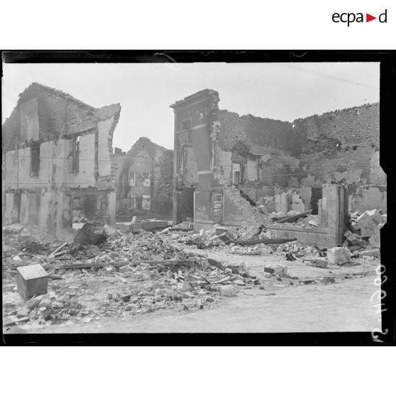 Combres (Meuse). Les ruines du village. Au fond, la crête des Eparges.