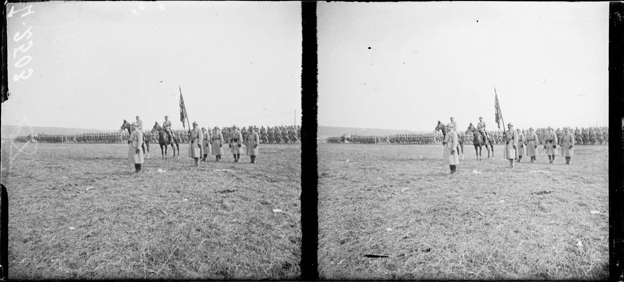 Haudainville, Meuse, revue et remise de décoration par le général de Fonclare et le général Corvisart.