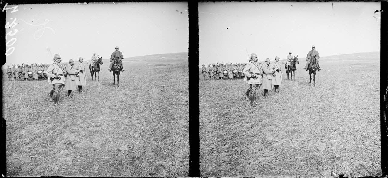 Haudainville, Meuse, revue passée par le général de Fonclare, commandant du 15e CA. Le lieutenant-colonel Rauscher du 12e d'infanterie.