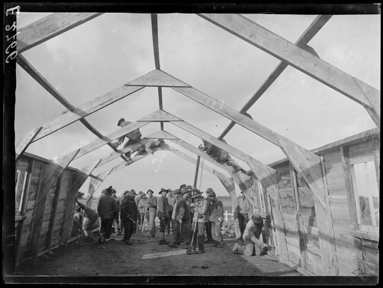 Haussimond (Marne). Construction d'un camp par les Américains. Les baraquements.