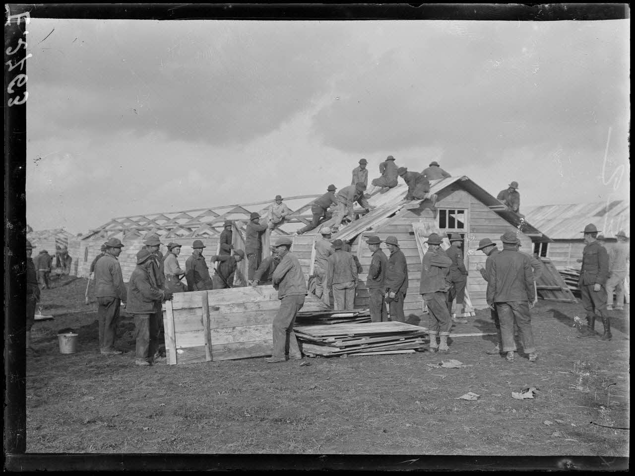 Haussimond (Marne). Construction d'un camp par les Américains. Les baraquements.