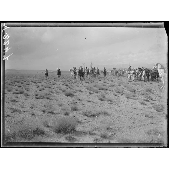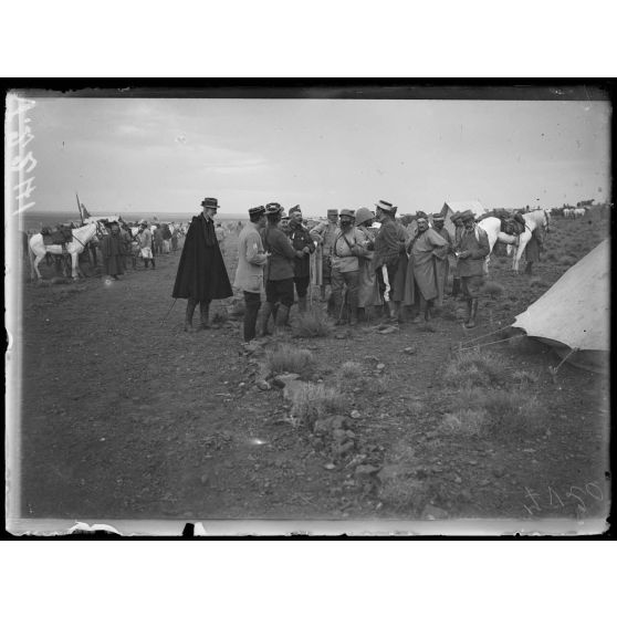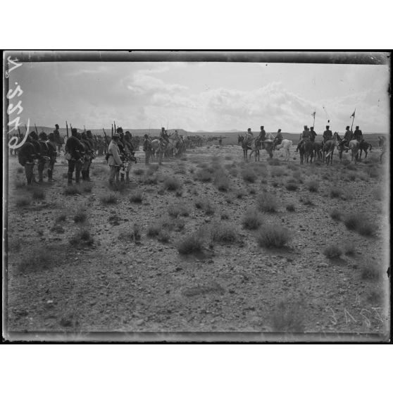 Haute-Moulouya, près d'Assaka. Le général Lyautey passe en revue les groupes mobiles de Meknès et de Bou Denib.