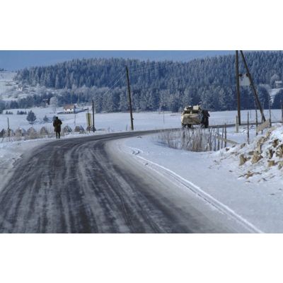 Convoi de VAB du BAT INF 2 (RICM) sur les routes bosniaques enneigées en direction de Rogatica.