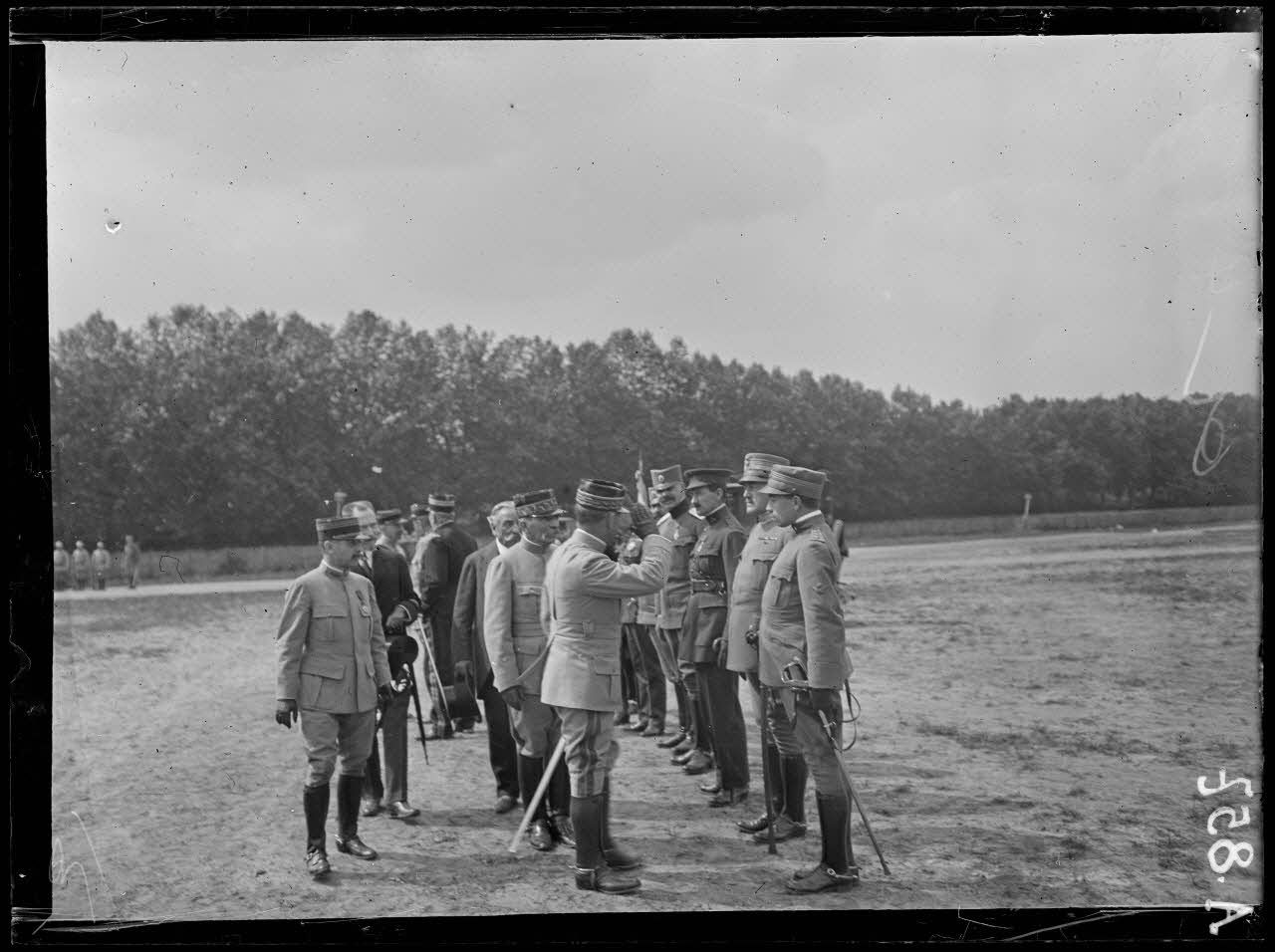 Hippodrome de Vincennes. Revue des sociétés de préparation militaire. Officiers étrangers passant devant les sociétés de préparation militaire.