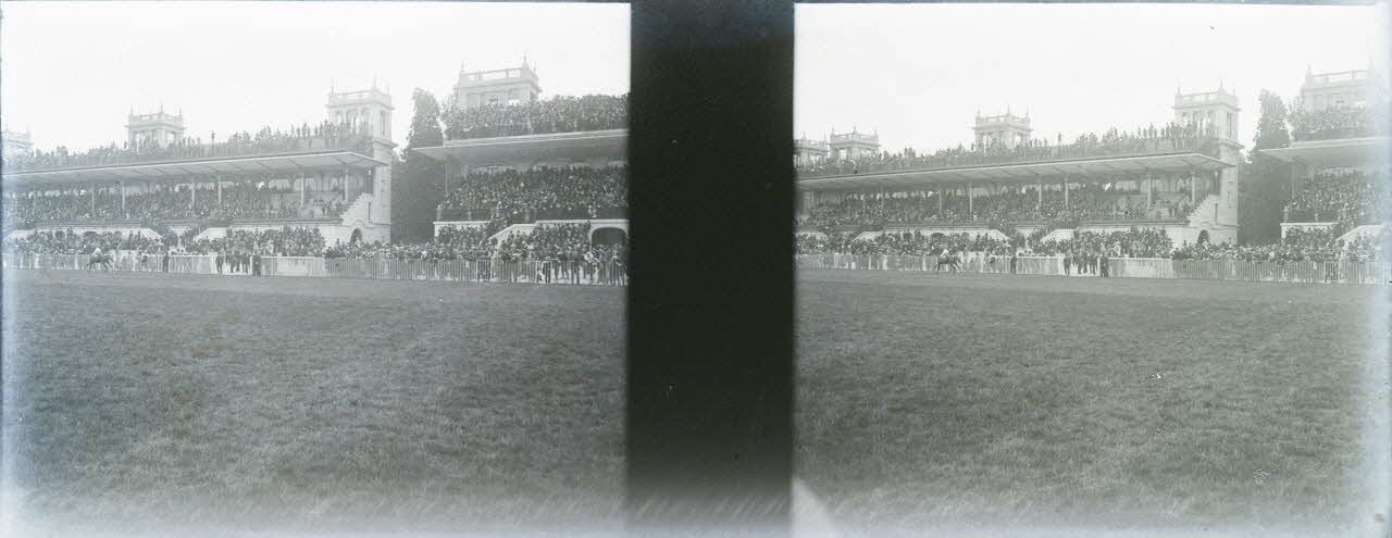 Ce reportage rassemble des photographies de la vie quotidienne civile, et notamment une série prise lors d'une course hippique.