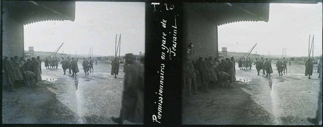 I.10. Permissionnaires en gare de Jessaint. [légende d'origine]