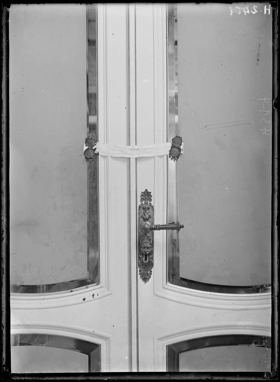 Ile de Corfou. A l'Achilleion. Des scellés apposés sur la porte d'entrée des appartements impériaux. [légende d'origine]