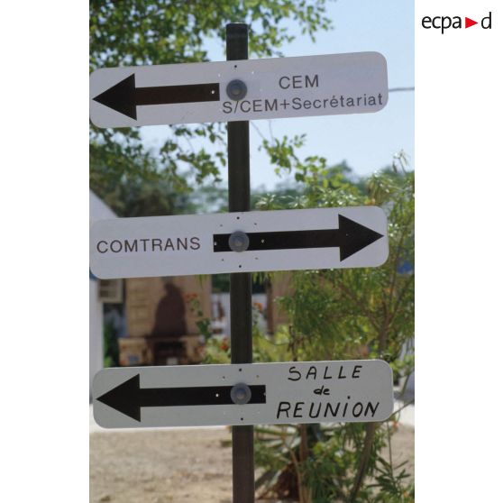 Le PC à l'EMIA (état-major interarmées) de Ryad. Les panneaux indicateurs pour la localisation des différents services.