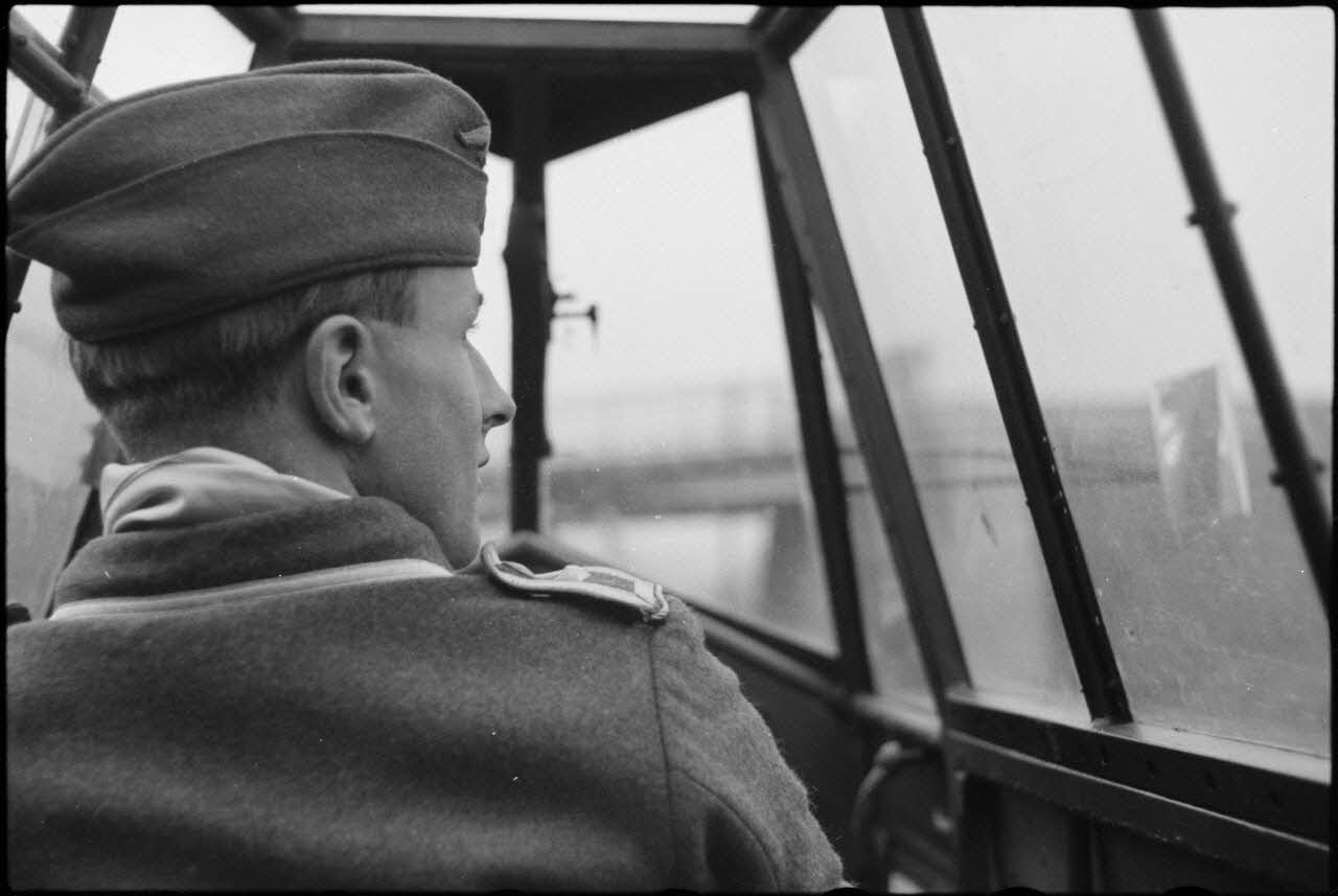 Installé dans un planeur DFS-230 en compagnie de son pilote, le reporter Stocker immortalise le voyage en train du 8./Luftlandegeschwader 1 (8./LLG1).