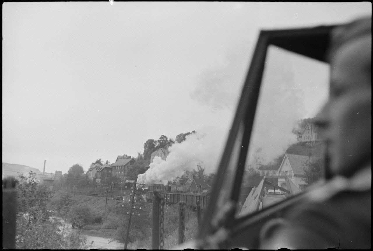 Installé dans un planeur DFS-230 en compagnie de son pilote, le reporter Stocker immortalise le voyage en train du 8./Luftlandegeschwader 1 (8./LLG1).
