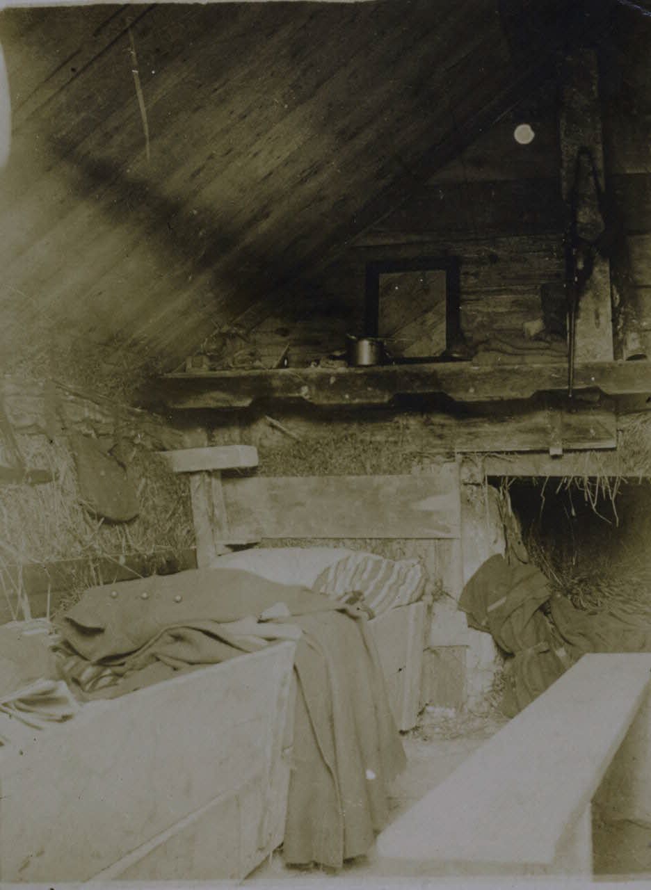 Intérieur de gourbi d'artilleurs. [légende d'origine]
