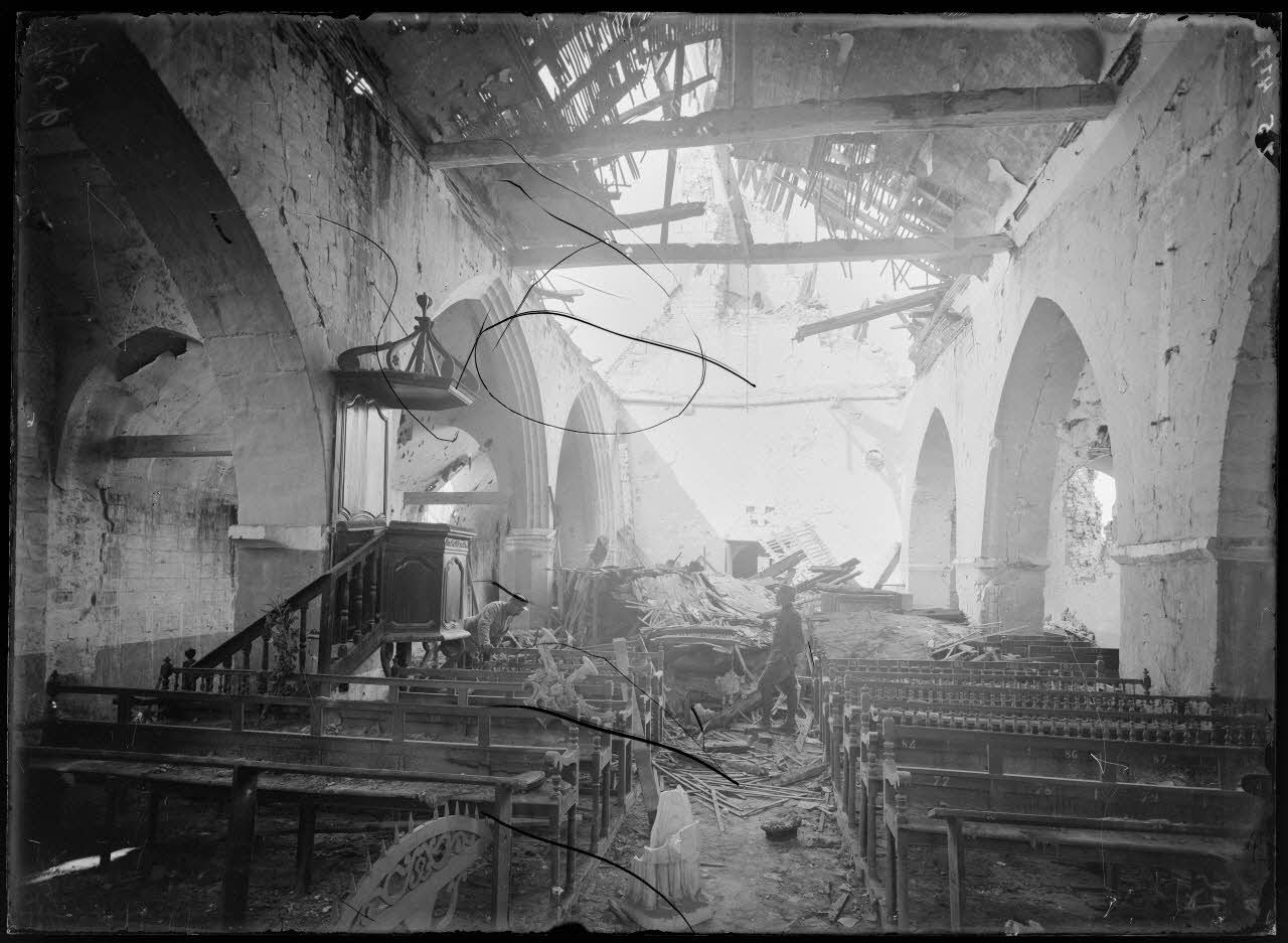 Dans les villages de Dancourt, Grivillers, Cessier, (Somme, Z 354 à Z 356), les habitations et les églises sont détruites.
