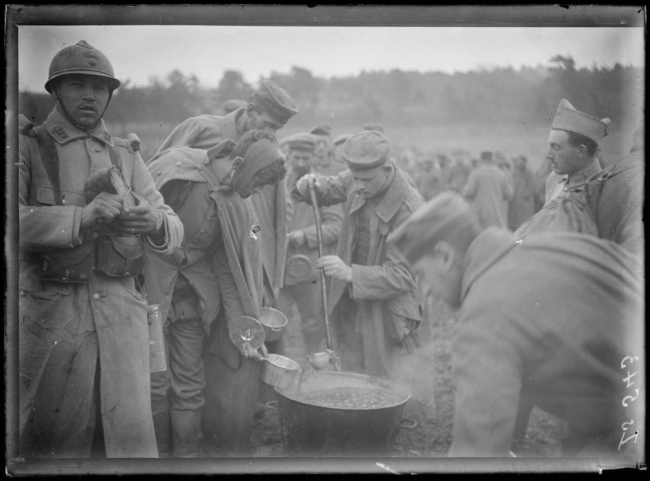 - Dans le camp de prisonniers d'Irval, entre Vandeuil et Jonchery-sur-Vesle (IS 542 à IS 549) un jeune soldat allemand est content d'avoir été capturé. La soupe est distribuée aux prisonniers.