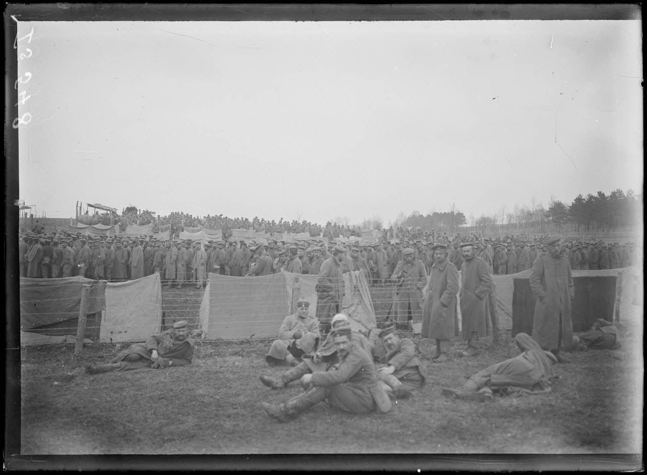 - Dans le camp de prisonniers d'Irval, entre Vandeuil et Jonchery-sur-Vesle (IS 542 à IS 549) un jeune soldat allemand est content d'avoir été capturé. La soupe est distribuée aux prisonniers.