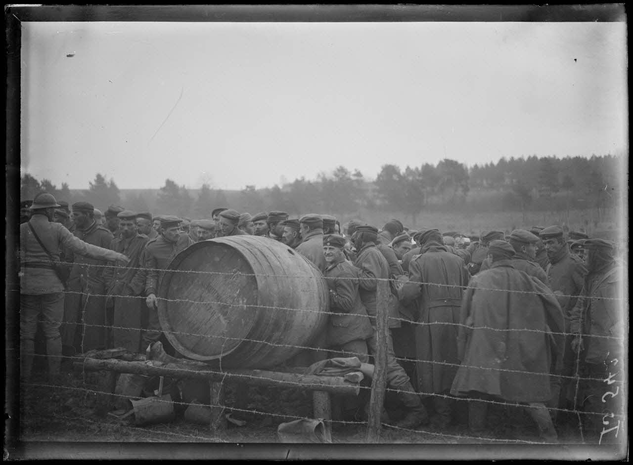 Irval, Marne, camp de prisonniers. Distribution de la soupe.