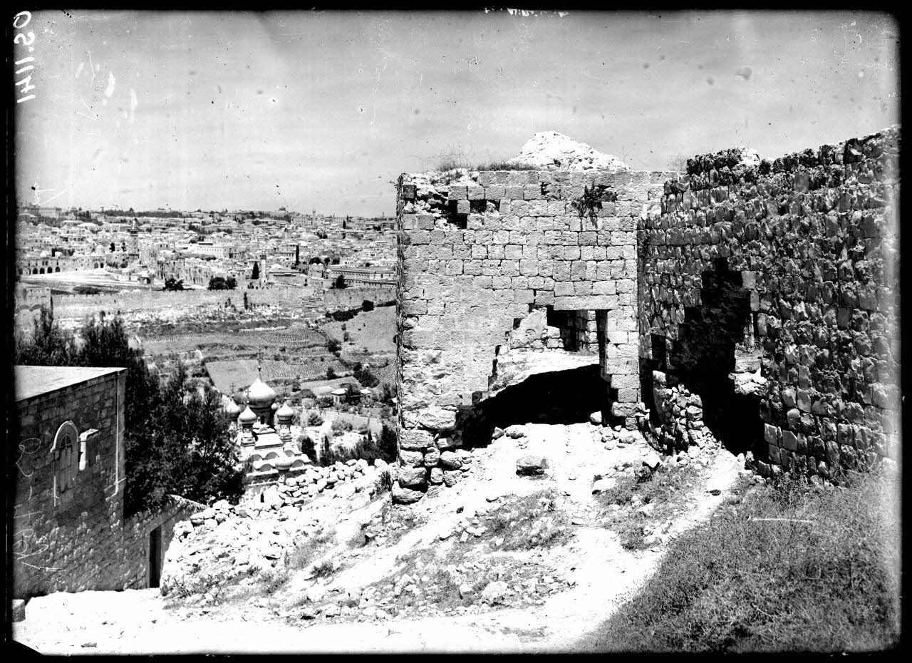 Jérusalem. Palestine. Route de Jéricho. Tranchée du mont Bézéther. Remparts nord de la ville, au fond hospice allemand.