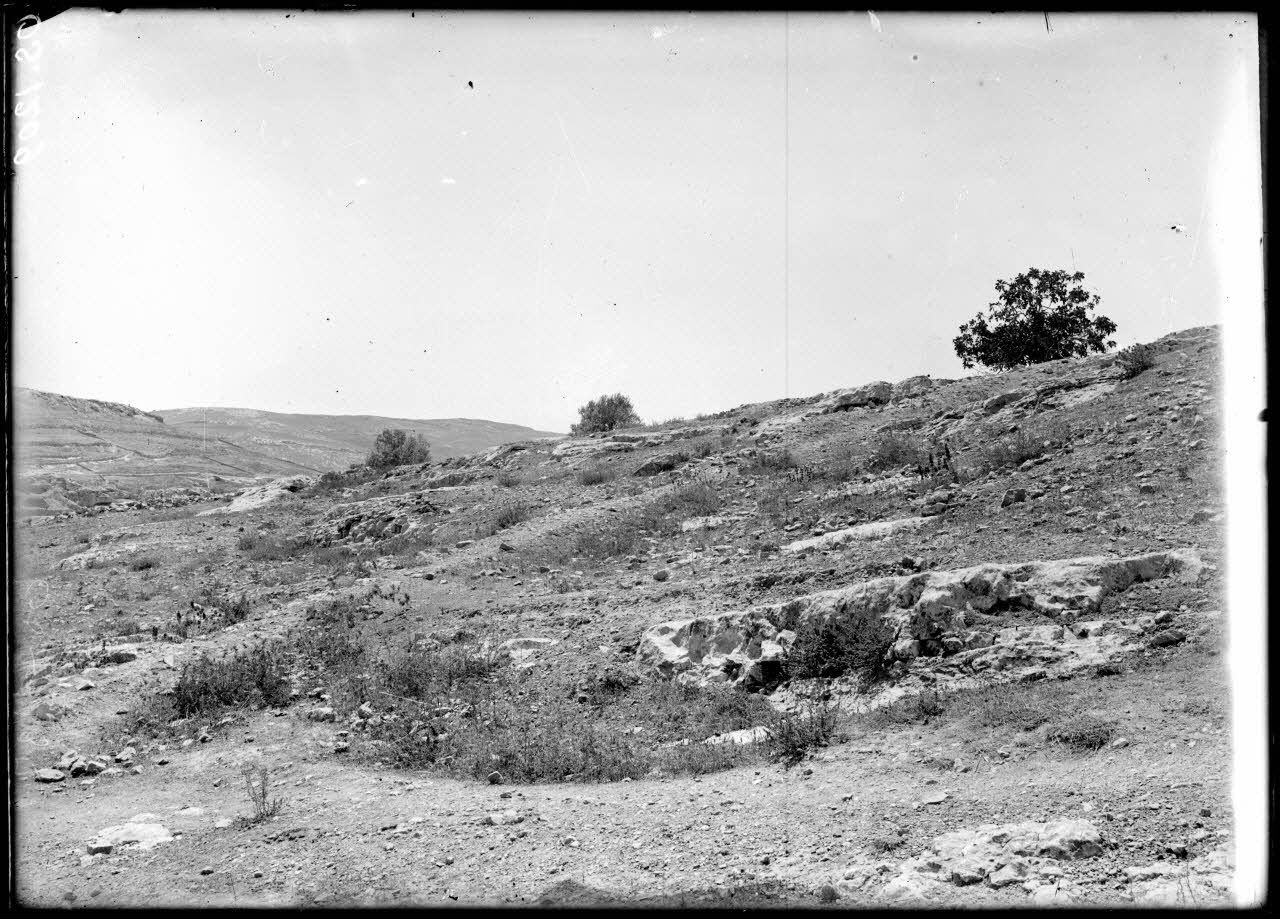Jérusalem. Palestine. Route de Jéricho. Tranchée du mont Bézéther. Remparts nord de la ville, au fond hospice allemand.
