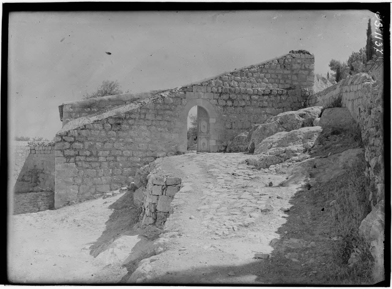 Jérusalem. Palestine. Route de Jéricho. Tranchée du mont Bézéther. Remparts nord de la ville, au fond hospice allemand.