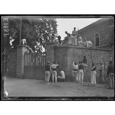 Joinville-le-Pont (Seine). Ecole normale militaire de gymnastique. L'escalade d'un mur.