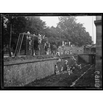 Joinville-le-Pont (Seine). Ecole normale militaire de gymnastique. L'escalade du fossé.