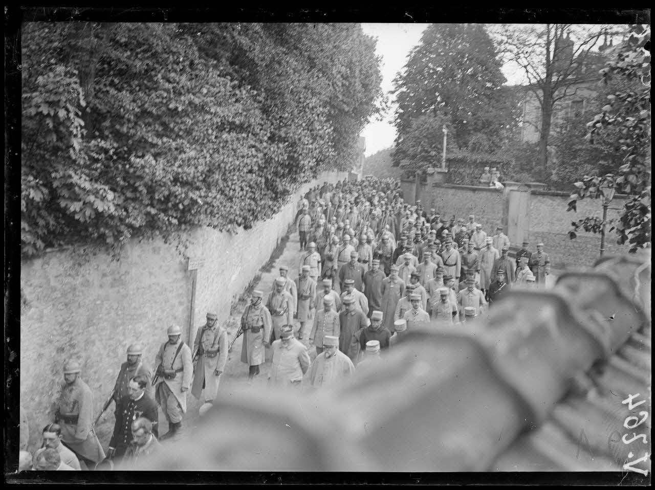 Jonchery-sur-Vesle, Marne, prisonniers allemands traversant le village.