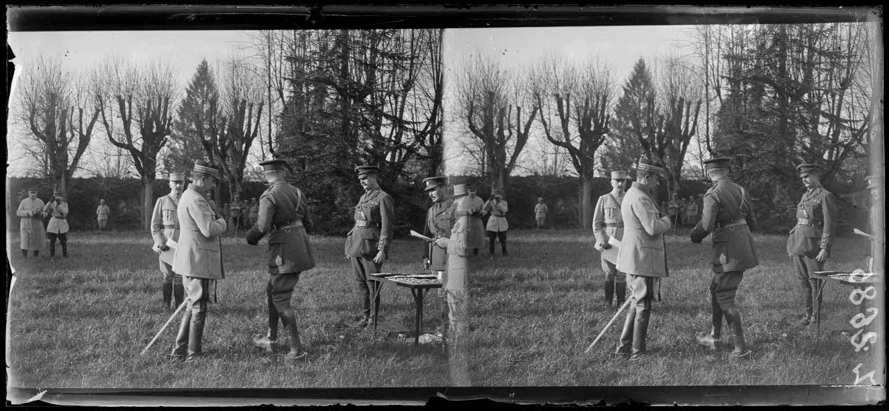 Jonchery-sur-Vesle (Marne). QG de la 5e armée. Décoration du général Mazel. [légende d’origine]