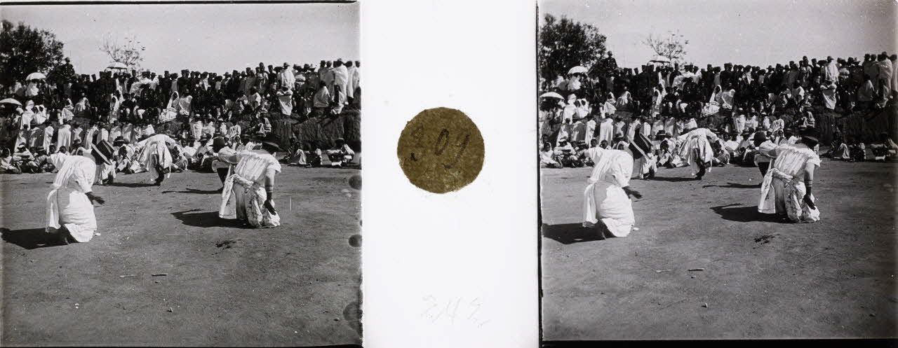 D68-29. Le terme malgache "kabary" désigne à l'origine un discours prononcé par le roi lors d'une assemblée consacrée à la discussion des affaires publiques et, par extension, toute fête traditionnelle publique. René Denis photographie le kabary qui a lieu, après la prise d'armes du 14 juillet 1908, sur l'île du lac Anosy. Une autre de ces réunions se tient à Manjakandriana, à 30 km à l'est de la capitale, où se produisent les musiciens de l'orchestre local, des chanteurs, des conteurs.