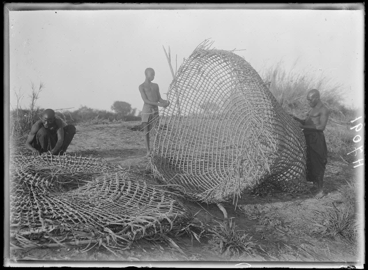 Kabé, sur le Logone. Fabrication de grandes nasses. [légende d'origine]