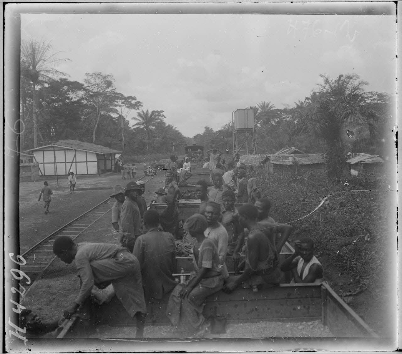 Scènes le long du Chemin de fer du Nord, au Cameroun, entre Bomono et M'banga, et travaux ferroviaires.