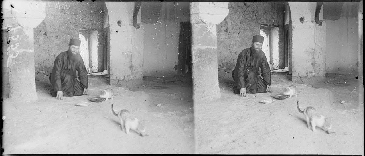Kalabaka [kalambaka]. Couvent des Météores. Le Père aux chats. [légende d'origine]