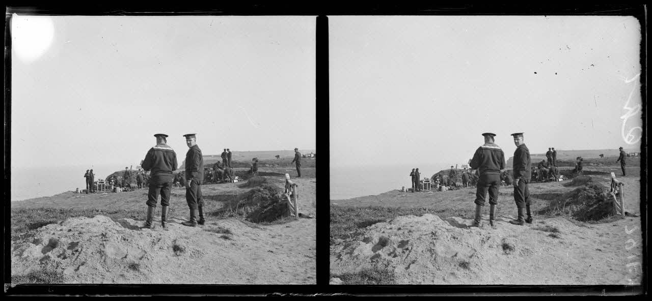 Le bâtiment britannique a été torpillé et le bâtiment français Dupleix est amarré dans la rade. Les soldats de ces navires organisent une partie de football. Le 2e RMA campe près de la rade.