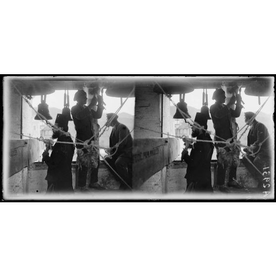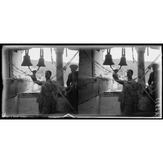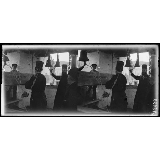 Vatopedi. Un caporal français carillonne en l'honneur de la victoire.