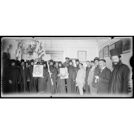 Une mission française visite les monastères du Mont Athos : Vatopédi et Pantéleimon. Les couvents sont pavoisés pour fêter l'armistice et la mission française est félicitée pour la victoire (A2930 à A2946). Peut-être, parmi les personnalités civiles, l'historien (byzantiniste), archéologue, photographe Gabriel Millet (A2938, A2939).
