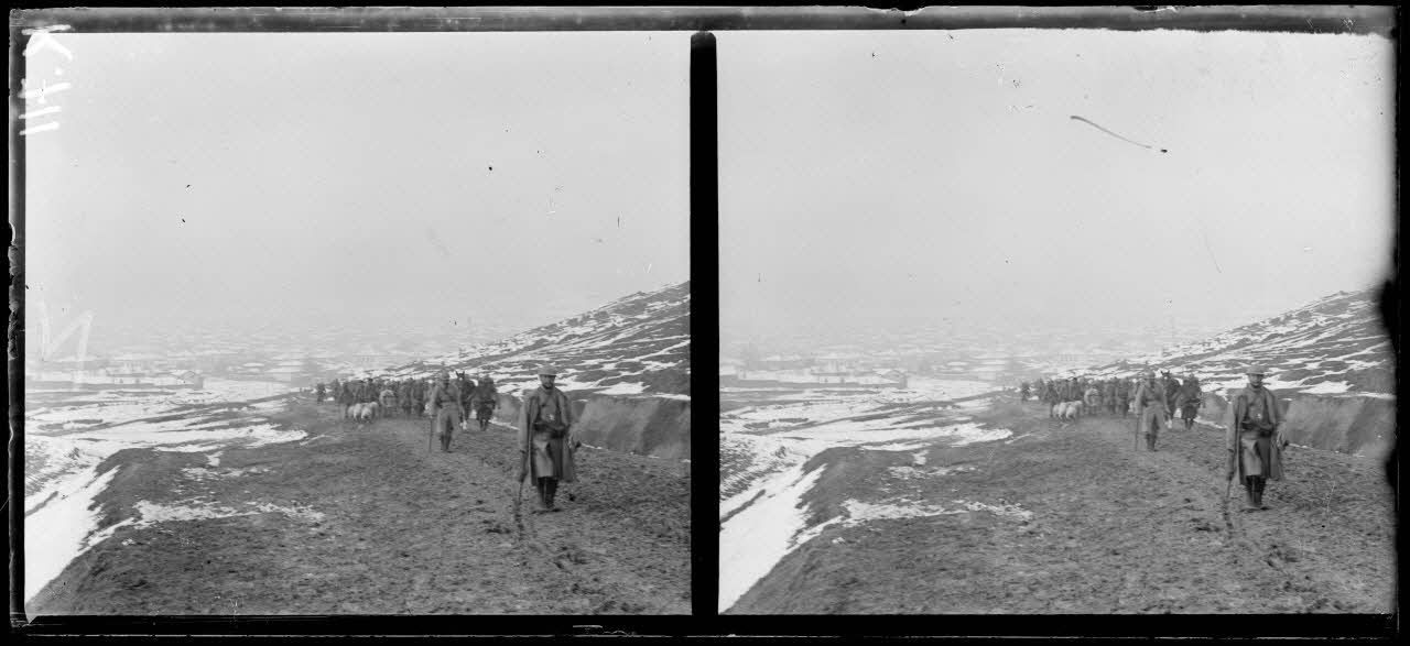 Kavadar, 3 décembre 915. 9h30. Départ d'un régiment (le 148e) pour Demir Kapou par une piste de montagne.