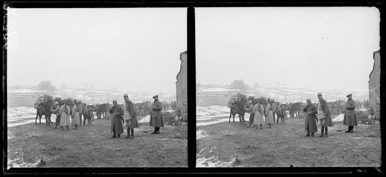 Kavadar, 3 décembre 1915, 9h du matin. Le colonel (du 148e) coiffé d'un béret d'alpin assiste au départ des troupes.