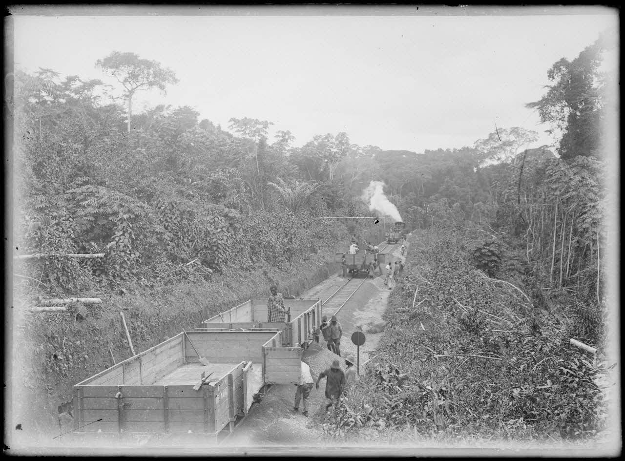 Kilomètre 37. Un train de ballastage. [légende d'origine]