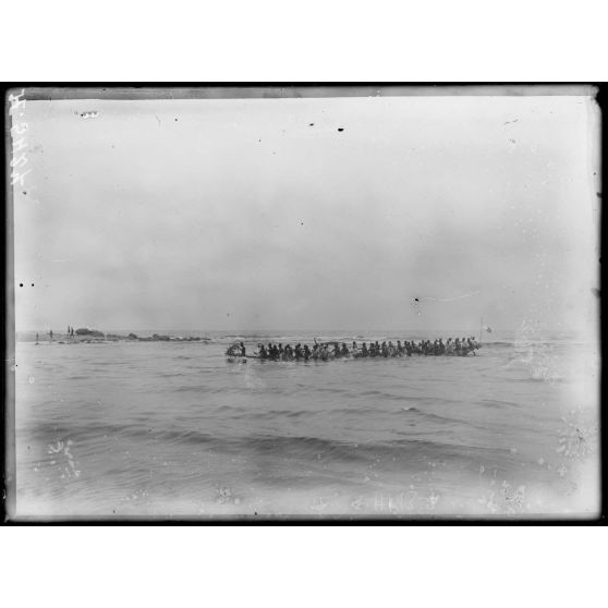 Kribi. Course de grandes pirogues de 58 pagayeurs.