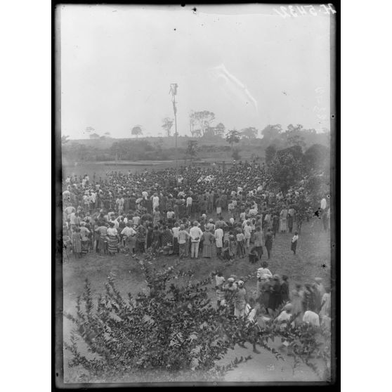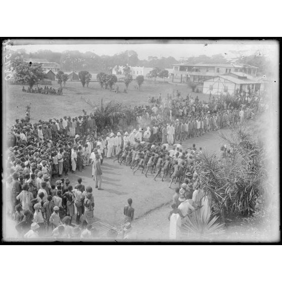 Pour le 14 juillet, la ville de Kribi au Cameroun organise des jeux (courses à pied, courses de pirogues, mât de cocagne). Les troupes cantonnées dans la région sont passées en revue, observées par la population locale. Le folklore régional est représenté par des hommes panthères.