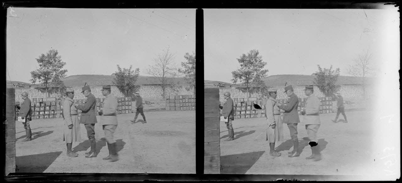 Krivolak. Le général Sarrail décore le capitaine La Chaussée. [légende d'origine]