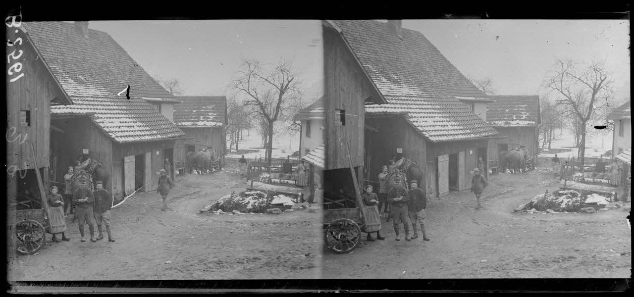 Dans des endroits non localisés, il photographie notamment : une famille alsacienne en traîneau, la réparation d'un pont, un central téléphonique, une vieille femme portant du bois, des enfants balayant la neige, une corvée de charbon, un ambulancier à cheval, des soldats équipés contre le froid.