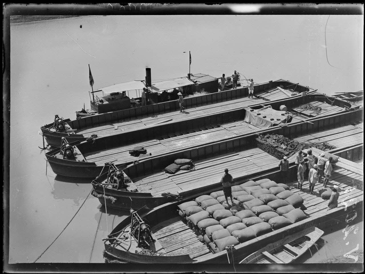Ksiri. Chargement des chalands de blé sur le Sébou.