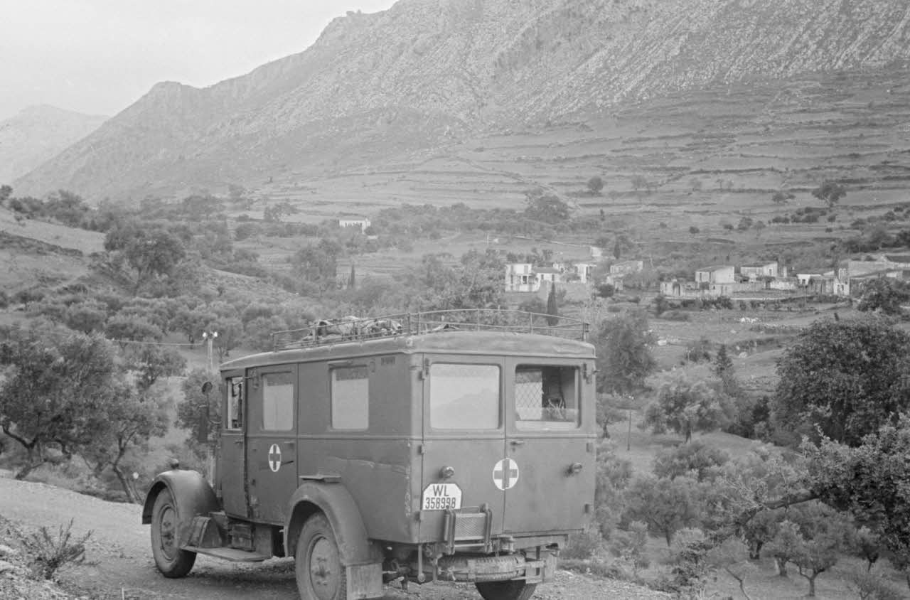 A l'arrivée au centre de repos de l'armée de l'air allemande de Kastelli (Kastamoniza), l'ambulance Phaenomen Granit est déchargée.