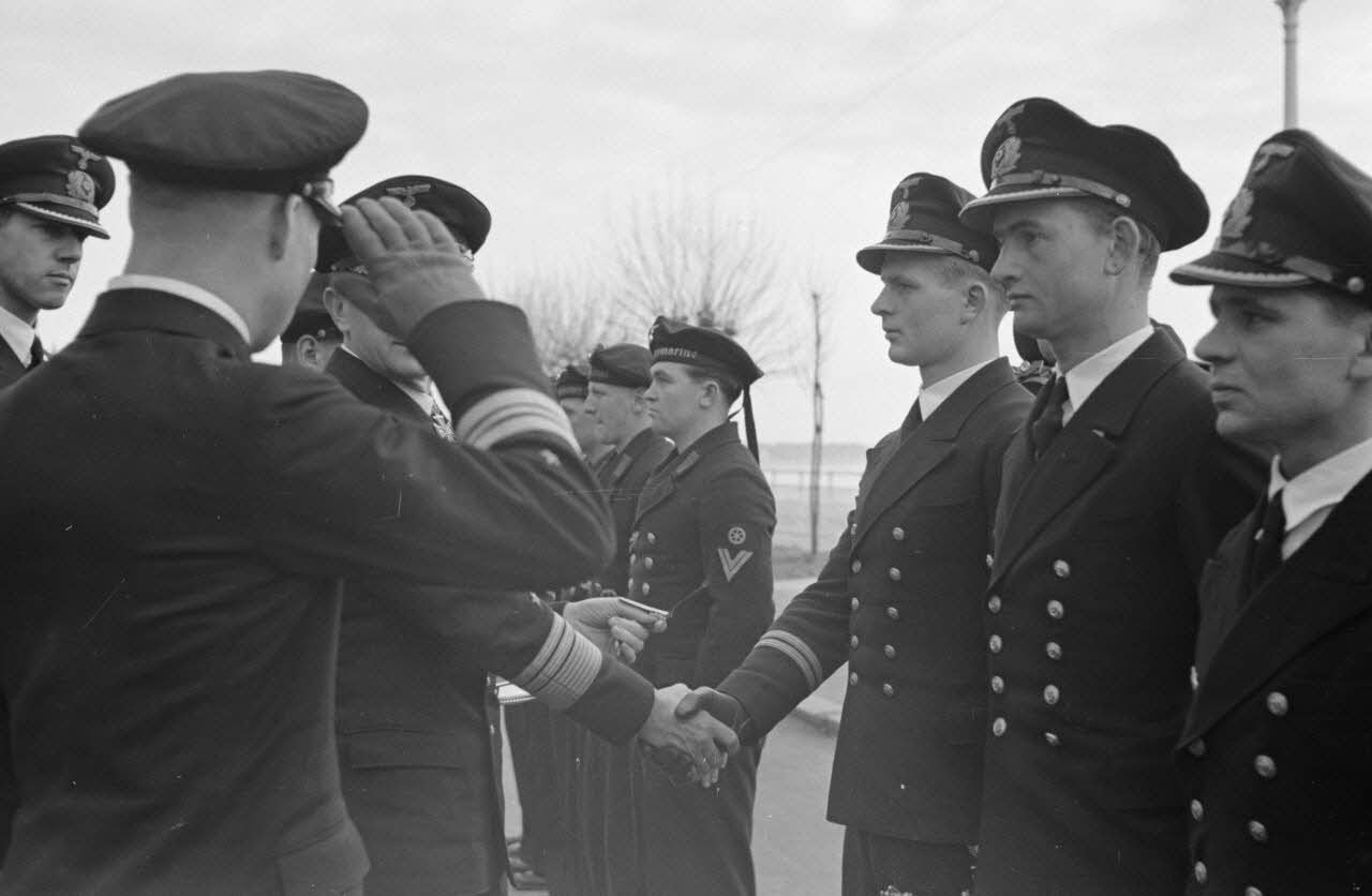 L'amiral Dönitz remet des décorations (croix de fer) en présence du capitaine de corvette (Korvettenkapitän) Herbert Sohler, représentant de la 7.Unterseebootsflottille.