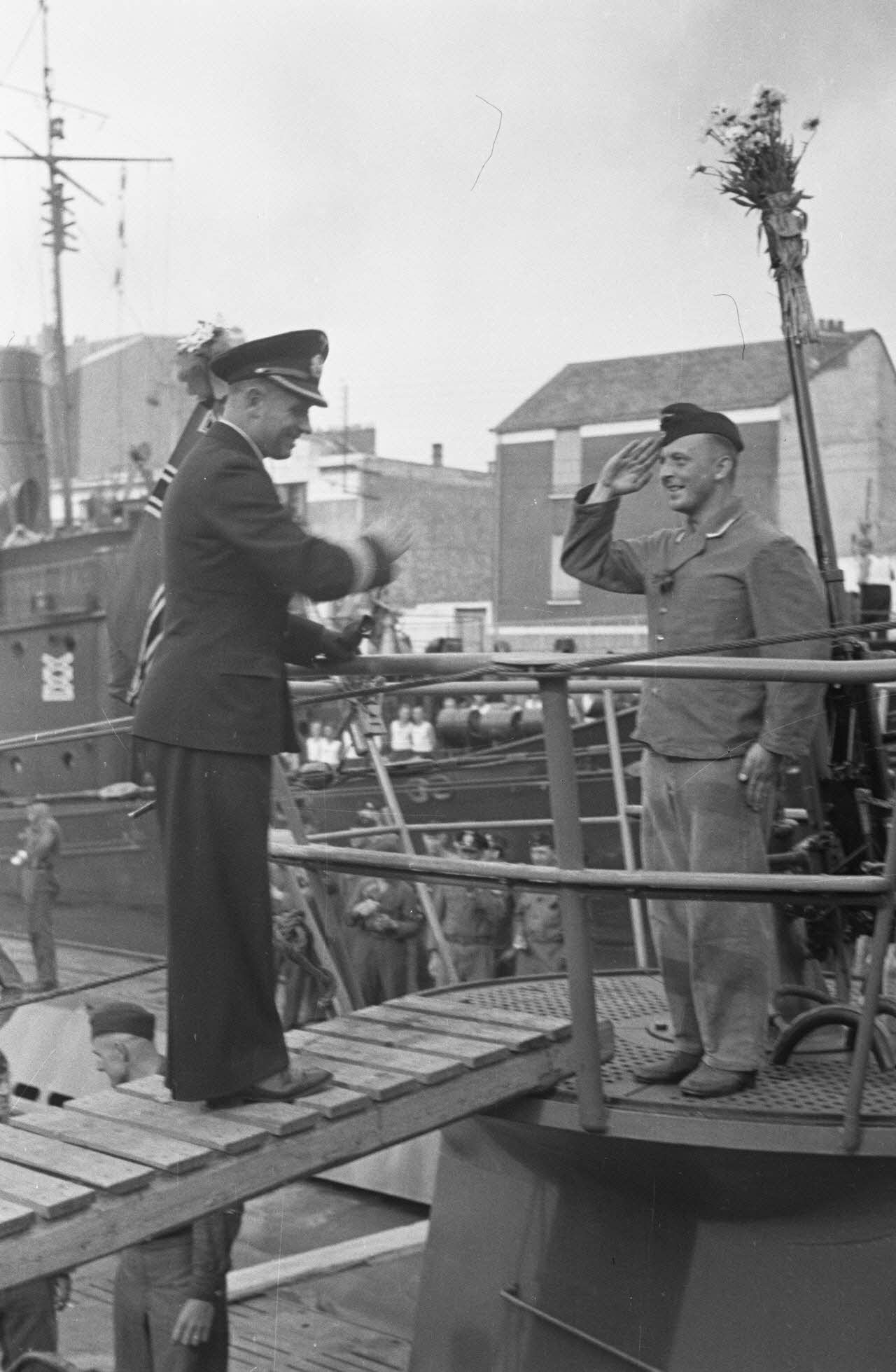 L'amiral Otto Schwiewind salue un sous-marinier d'un des U-boot (U-94 ou U-93) sur le point de partir en croisière.