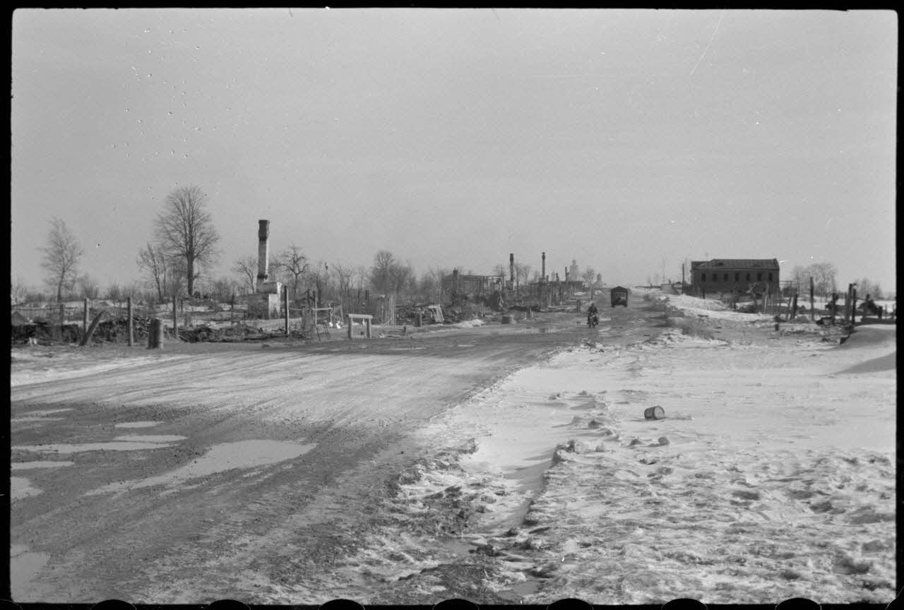 Les soldats allemands se préparent à quitter un village dans le secteur de Wjasma.