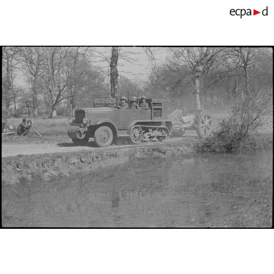 Départ en exercice d'un tracteur d'artillerie du 24e RA.