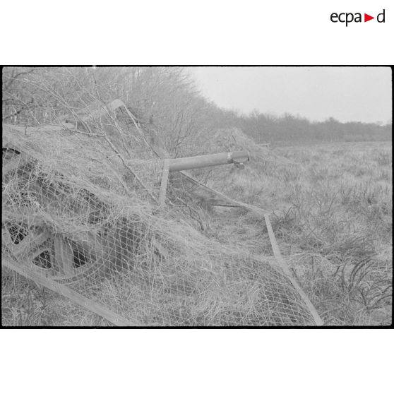 Camouflage d'une pièce d'artilerie du 24e RA.